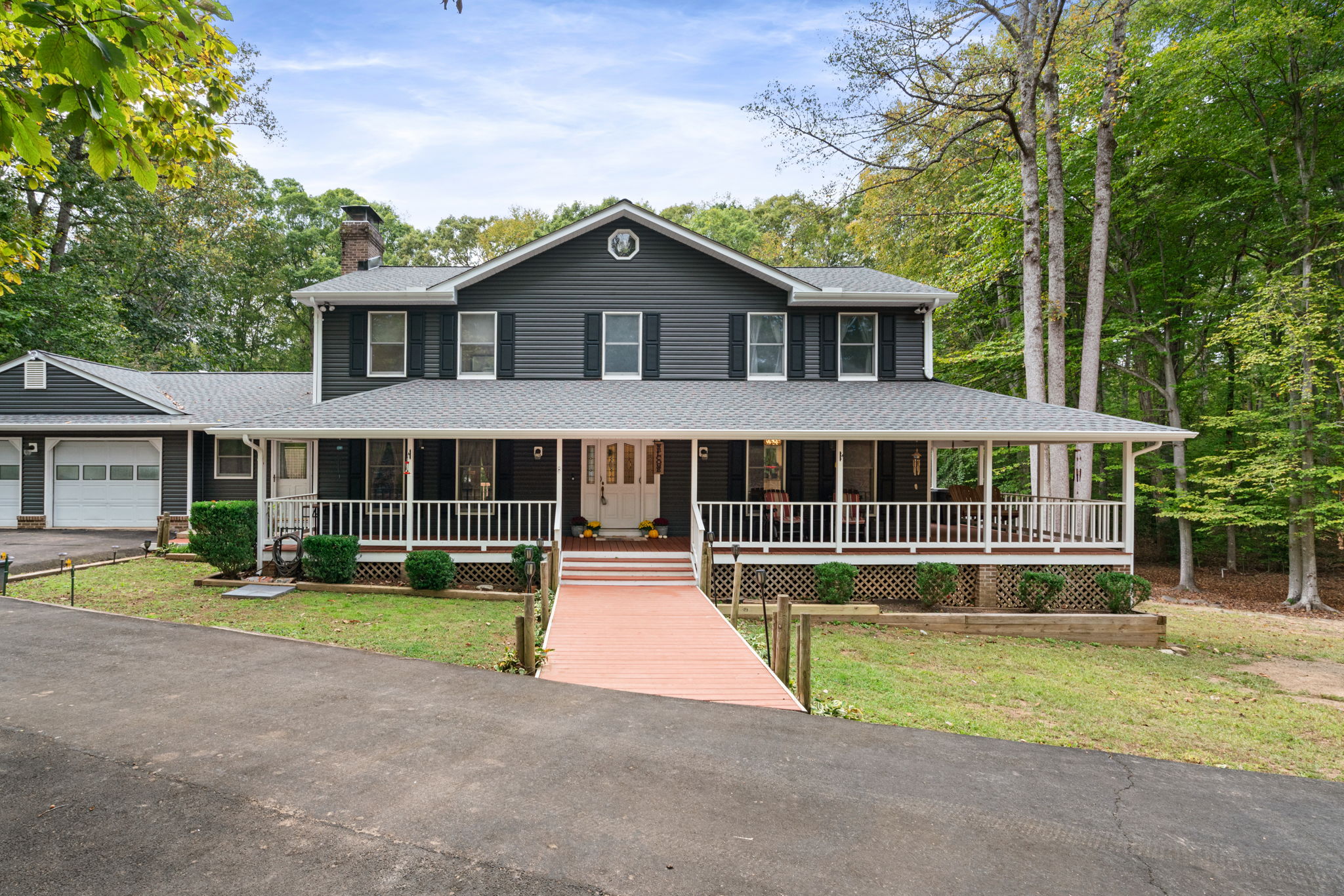 This stunning Colonial beautifully combines classic charm with modern updates. You'll be immediately drawn to the picturesque wrap-around front porch, a perfect spot for morning coffee or evening relaxation. The home has excellent curb appeal and peace of mind with new siding, a new roof, and new shutters. Step inside to discover a beautifully updated interior. The kitchen has been completely renovated, featuring granite countertops, new cabinets, stainless steel appliances, and stunning new flooring. The main level also features a brand new, upgraded full bathroom, a convenient and rare find in a Colonial. The family room features an impressive brick wood-burning fireplace and wood-beamed ceiling. Enjoy endless summer fun in the sparkling inground saltwater pool with an attached spa, creating a true backyard oasis. Car enthusiasts and hobbyists will love the garage, which is both heated and cooled, offering a comfortable workspace year-round. There is also a large storage shed to keep yard equipment and tools neatly tucked away. This home is located in the Coventry HOA community, which provides amenities such as access to a private lake and tennis courts. Don't miss the opportunity to make this your new home!